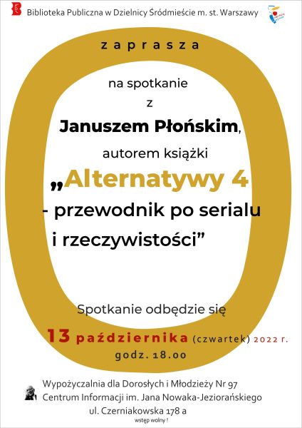 Biblioteka Publiczna w Dzielnicy Śródmieście m.st. Warszawy zaprasza na spotkanie z Januszem Płońskim, autorem książki „Alternatywy 4 – przewodnik po serialu i rzeczywistości”.