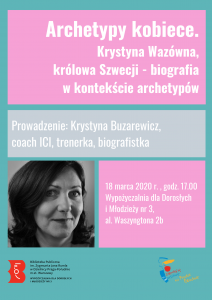 „Archetypy kobiece. Krystyna Wazówna, królowa Szwecji – biografia w kontekście archetypów”. Porozmawiamy o postaciach z mitologii greckiej oraz Krystynie, królowej Szwecji.