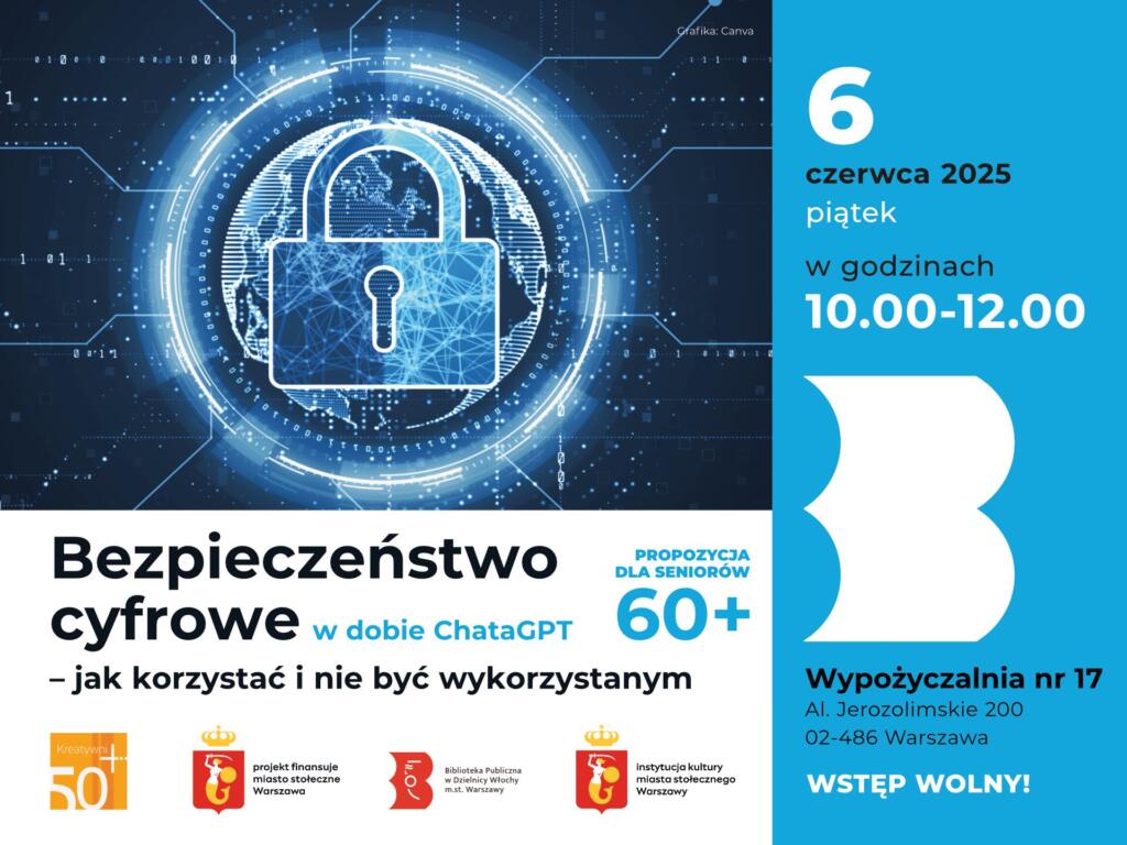 W piątek 6 czerwca 2025 w godz. 10.00-12.00 zapraszamy seniorów 60+ do Wypożyczalni nr 17 na bezpłatne spotkanie, organizowane przez Stowarzyszenie „Kreatywni 50 Plus”, poświęcone sztucznej inteligencji i bezpieczeństwu w sieci.