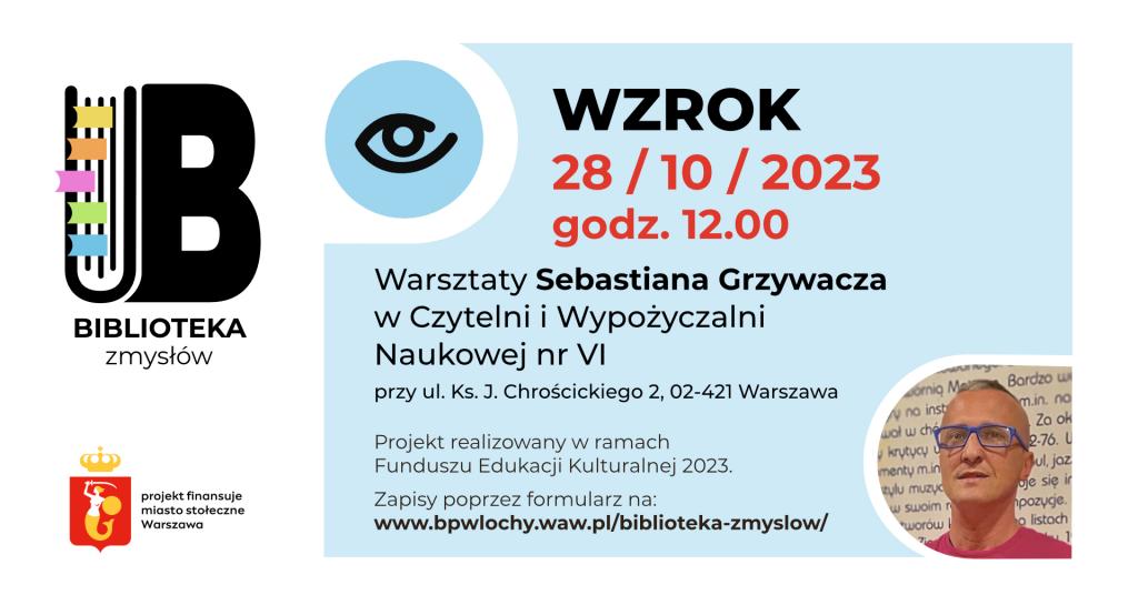 Warsztaty dla dzieci w wieku od 3 do 8 lat oraz ich opiekunów poprowadzi Sebastian Grzywacz – społecznik, współzałożyciel fundacji Między Słowami, przewodnik po Niewidzialnej Wystawie w Warszawie, od wielu lat aktywnie edukujący dzieci oraz młodzież, przybliży życie osób z niepełnosprawnościami i pomoże zrozumieć, jak ważną rolę pełni zmysł wzroku.