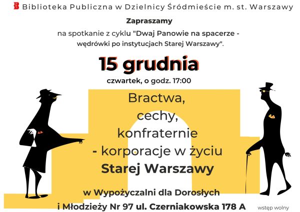 Zapraszamy 15 grudnia o godzinie 17:00 na spotkanie z cyklu „Dwaj Panowie na spacerze – wędrówki po instytucjach Starej Warszawy”.