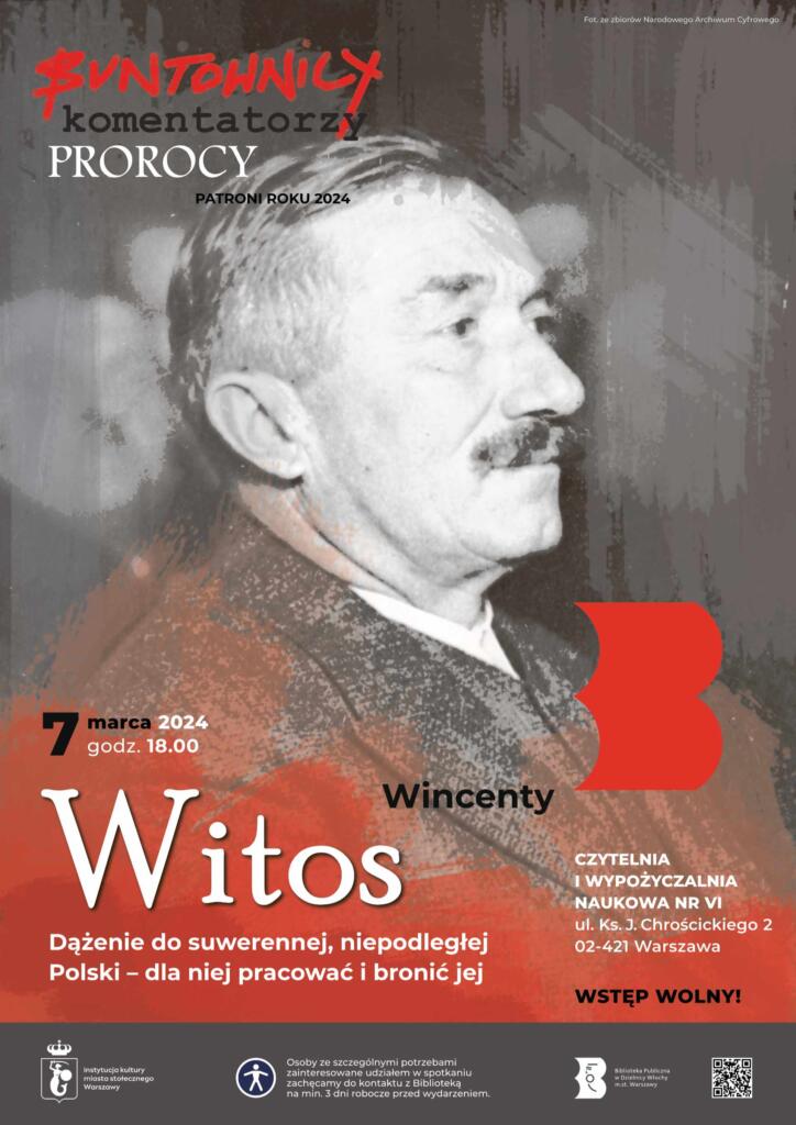 W czwartek 7 marca 2024 o godz. 18.00 zapraszamy do Czytelni i Wypożyczalni Naukowej nr VI na spotkanie z Anną Reichert z cyklu „Buntownicy, komentatorzy, prorocy. Patroni roku 2024”. Tytuł marcowej prelekcji brzmi: „Wincenty Witos. Dążenie do suwerennej, niepodległej Polski – dla niej pracować i bronić jej”.