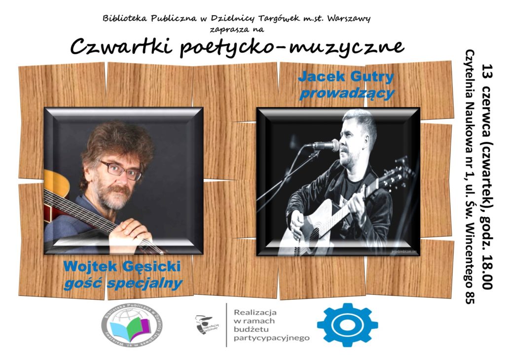 Biblioteka Publiczna w Dzielnicy Targówek m.st. Warszawy zaprasza 13 czerwca na występ Wojtka Gęsickiego – barda, kompozytora i autora tekstów.