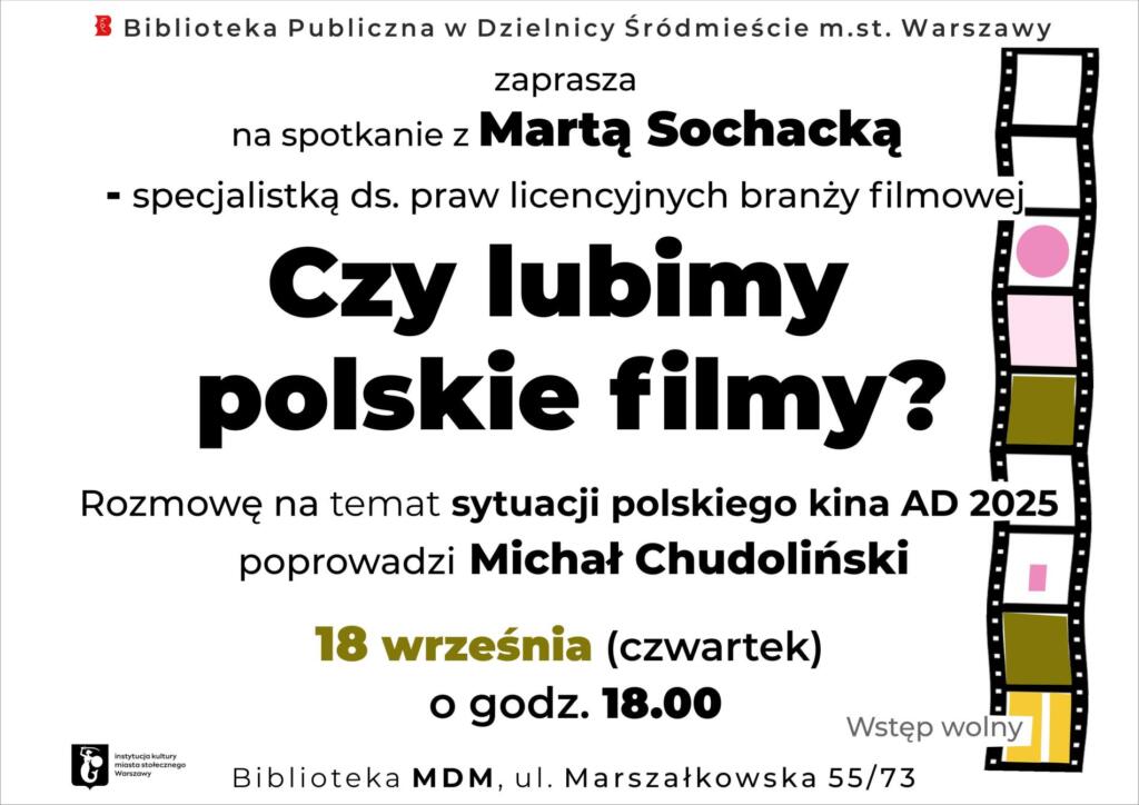 Biblioteka Publiczna w Dzielnicy Śródmieście m.st. Warszawy zaprasza na spotkanie z Martą Sochacką – specjalistką ds. praw licencyjnych branży filmowej.
