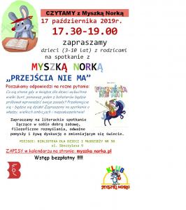 Zapraszamy dzieci w wieku 3-10 lat z rodzicami na spotkanie z MYSZKĄ NORKĄ.