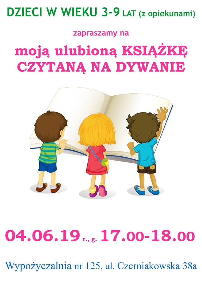 Zapraszamy dzieci wraz z opiekunami na ostatnie przed wakacjami ”Czytanie na Dywanie” 🙂