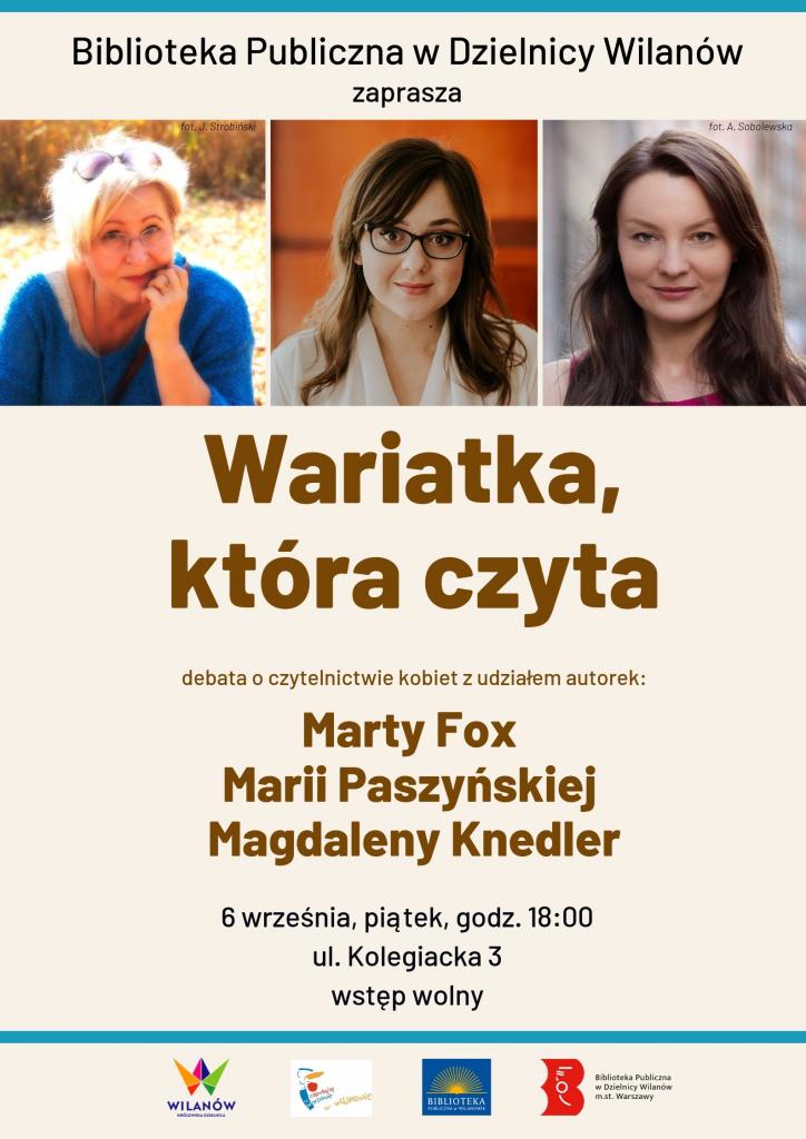 6 września (piątek) o godzinie 18:00 zapraszamy na ul. Kolegiacką 3 na debatę literacką „Wariatka, która czyta”.