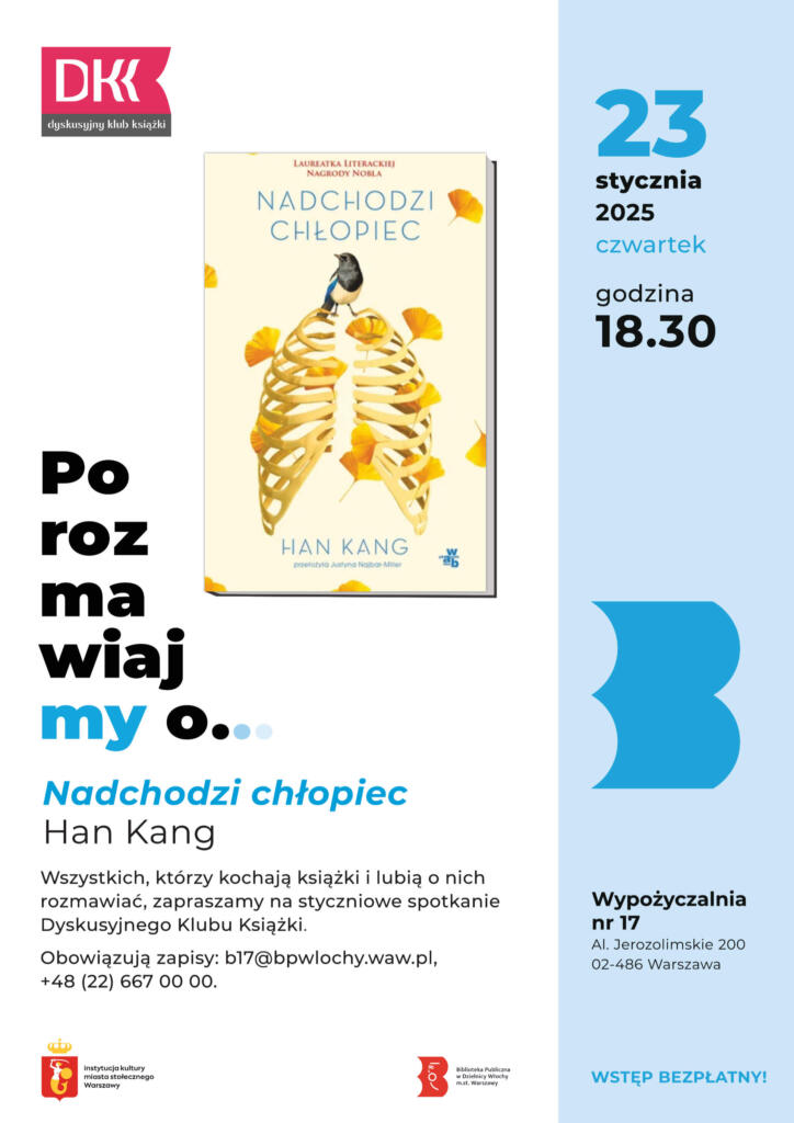 W czwartek 23 stycznia 2025 o godz. 18.30 Wypożyczalnia nr 17 zaprasza wszystkich, którzy kochają książki i lubią o nich rozmawiać, na spotkanie Dyskusyjnego Klubu Książki.