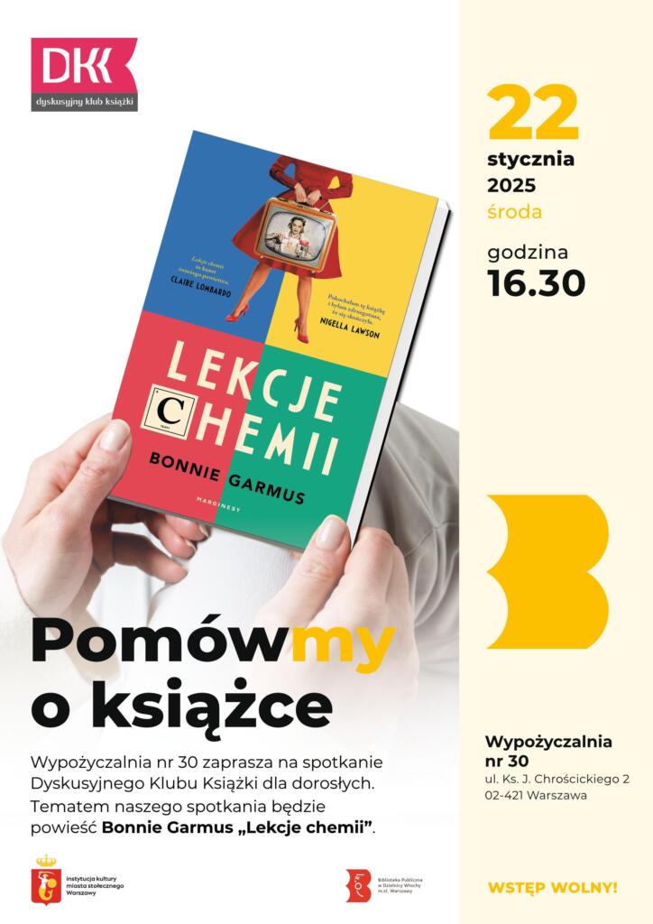 W środę 22 stycznia 2025 o godz. 16.30 Wypożyczalnia nr 30 zaprasza na spotkanie Dyskusyjnego Klubu Książki dla dorosłych.