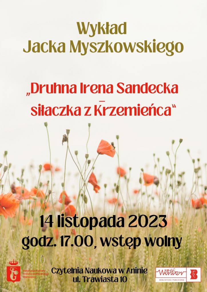 Czytelnia Naukowa w Aninie zaprasza na wykład Jacka Myszkowskiego – członka Warszawskiego Towarzystwa Genealogicznego i Towarzystwa Przyjaciół Krzemieńca oraz znawcy Kresów o Irenie Sendeckiej, polskiej patriotce, żywej legendzie Krzemieńca na Wołyniu.