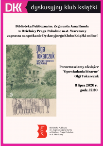 Biblioteka Publiczna na Pradze-Południe ma przyjemność zaprosić Państwa na kolejne spotkanie Dyskusyjnego Klubu Książki w wymiarze online!