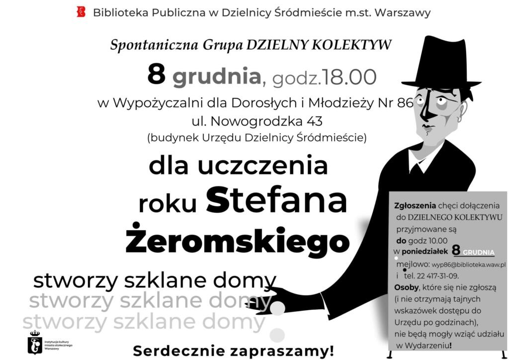 i Młodzieży Nr 86, ul. Nowogrodzka 43 (budynek Urzędu Dzielnicy Śródmieście) na spotkanie dla uczczenia Roku Stefana Żeromskiego. Stworzymy szklane domy.