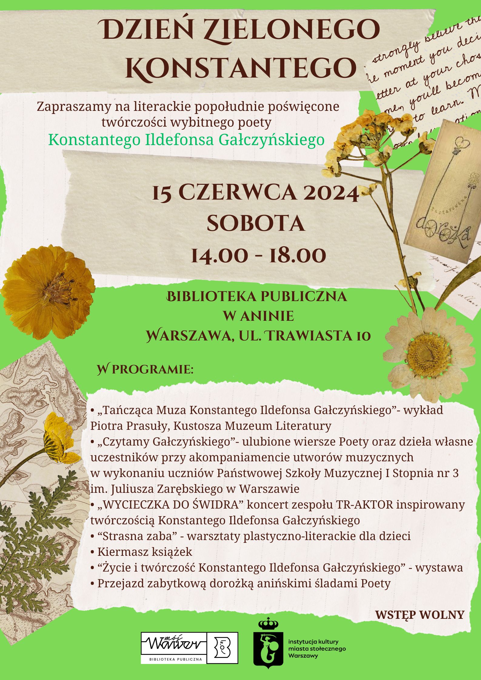 Czerwcowy Anin pulsujący zielenią i zapachem akacji to wymarzona sceneria do zanurzenia się w wyimaginowany świat poezji. Właśnie w takiej atmosferze odbędzie się doroczna impreza, znana jako Dzień Zielonego Konstantego.