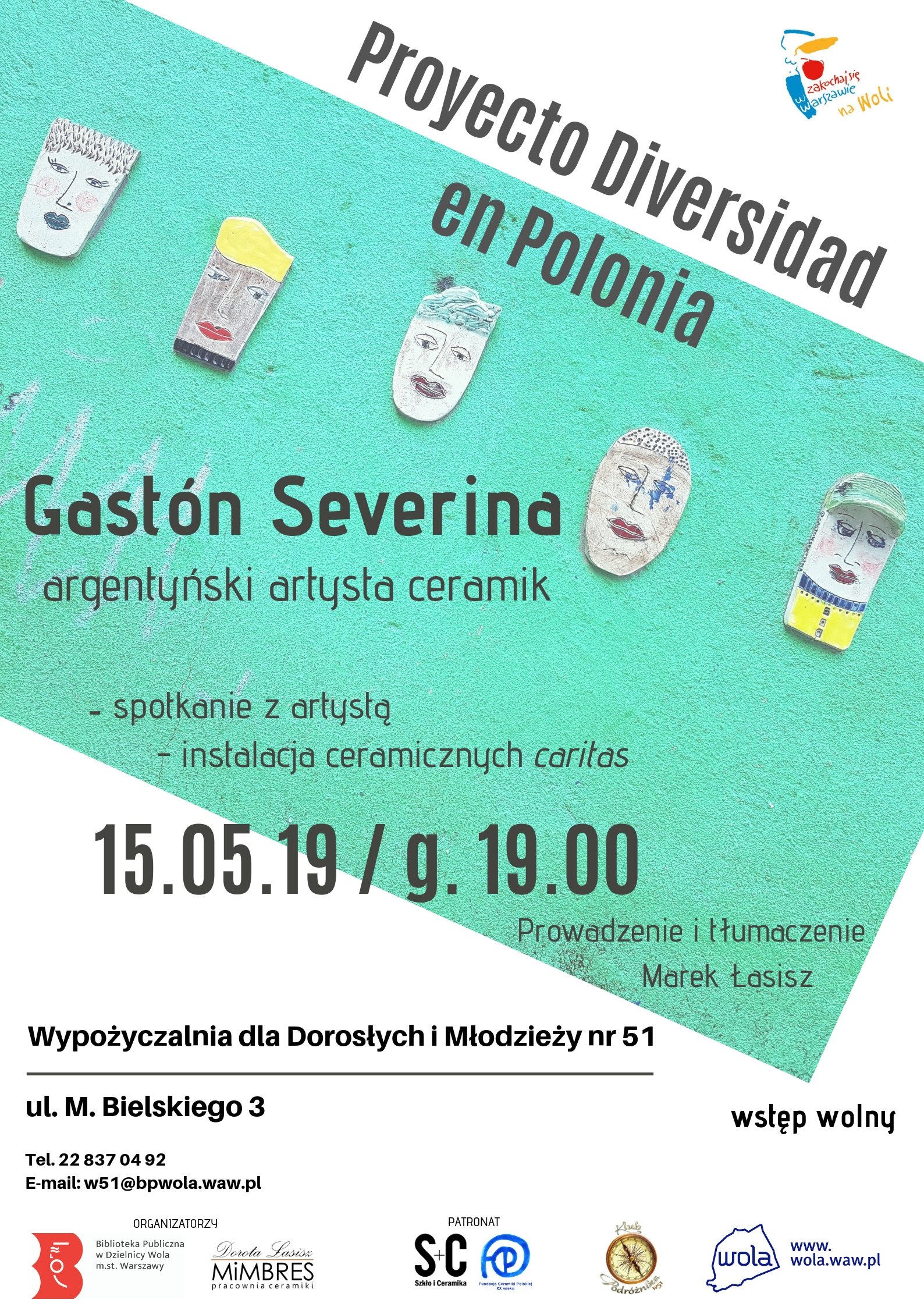 Gastón Severina, argentyński artysta ceramik, twórca Proyecto Diversidad, zainstaluje na fasadzie naszej biblioteki ceramiczne twarzyczki (caritas). Podczas wydarzenia będzie można wejść w dialog z artystą, który przedstawi założenia swojego projektu.