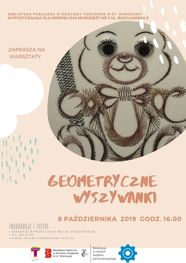 Biblioteka Publiczna w Dzielnicy Targówek m.st. Warszawy zaprasza na warsztaty tworzenia geometrycznych wyszywanek.