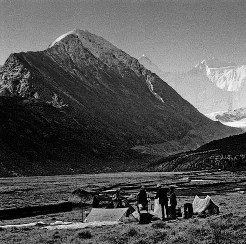 Na zdjęciu ekipa filmowa TVP w masywie Biełuchy (4.506 m n.p.m.) – to te ośnieżone góry w głębi, najwyższego szczytu Ałtaju.