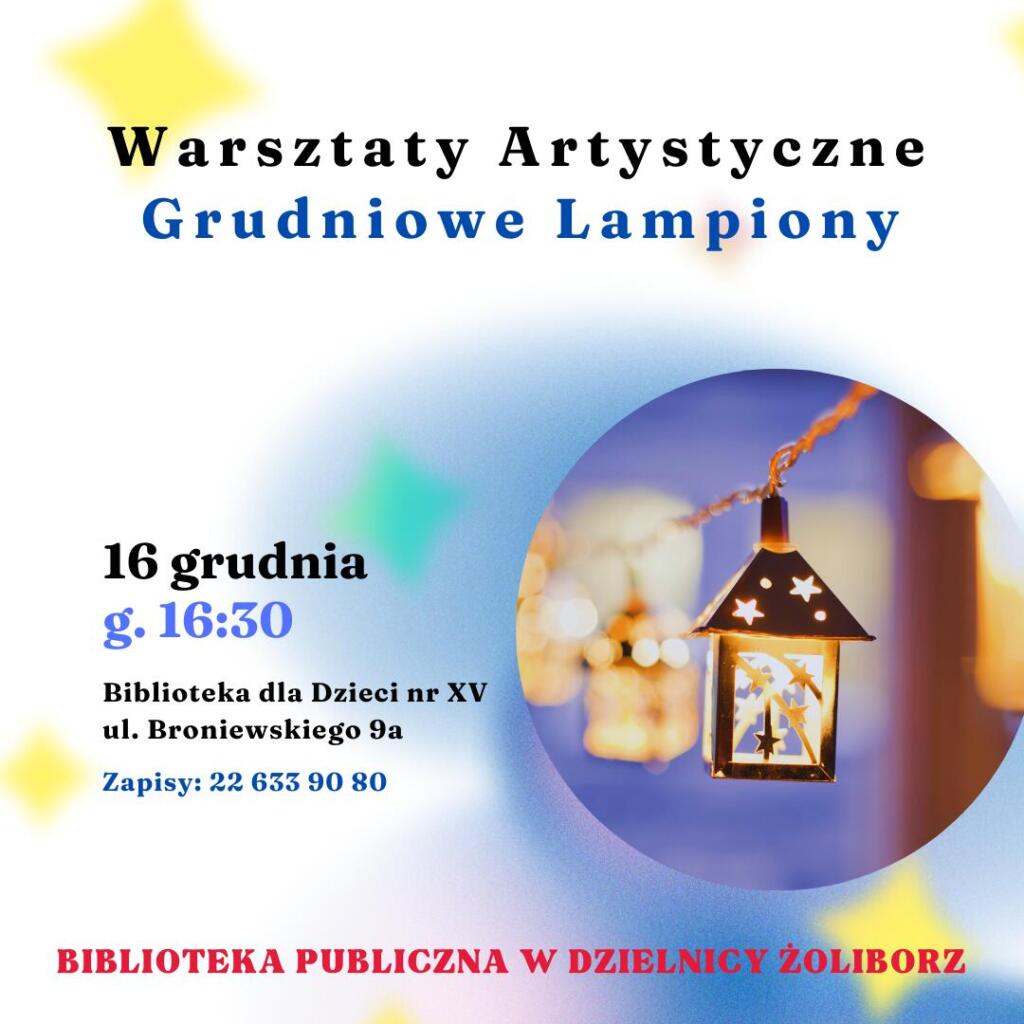 „Grudniowe lampiony” – warsztaty artystyczne, podczas których wykonamy lampiony wykorzystując m.in. słoiki z odzysku ozdabiając je świątecznymi akcentami.