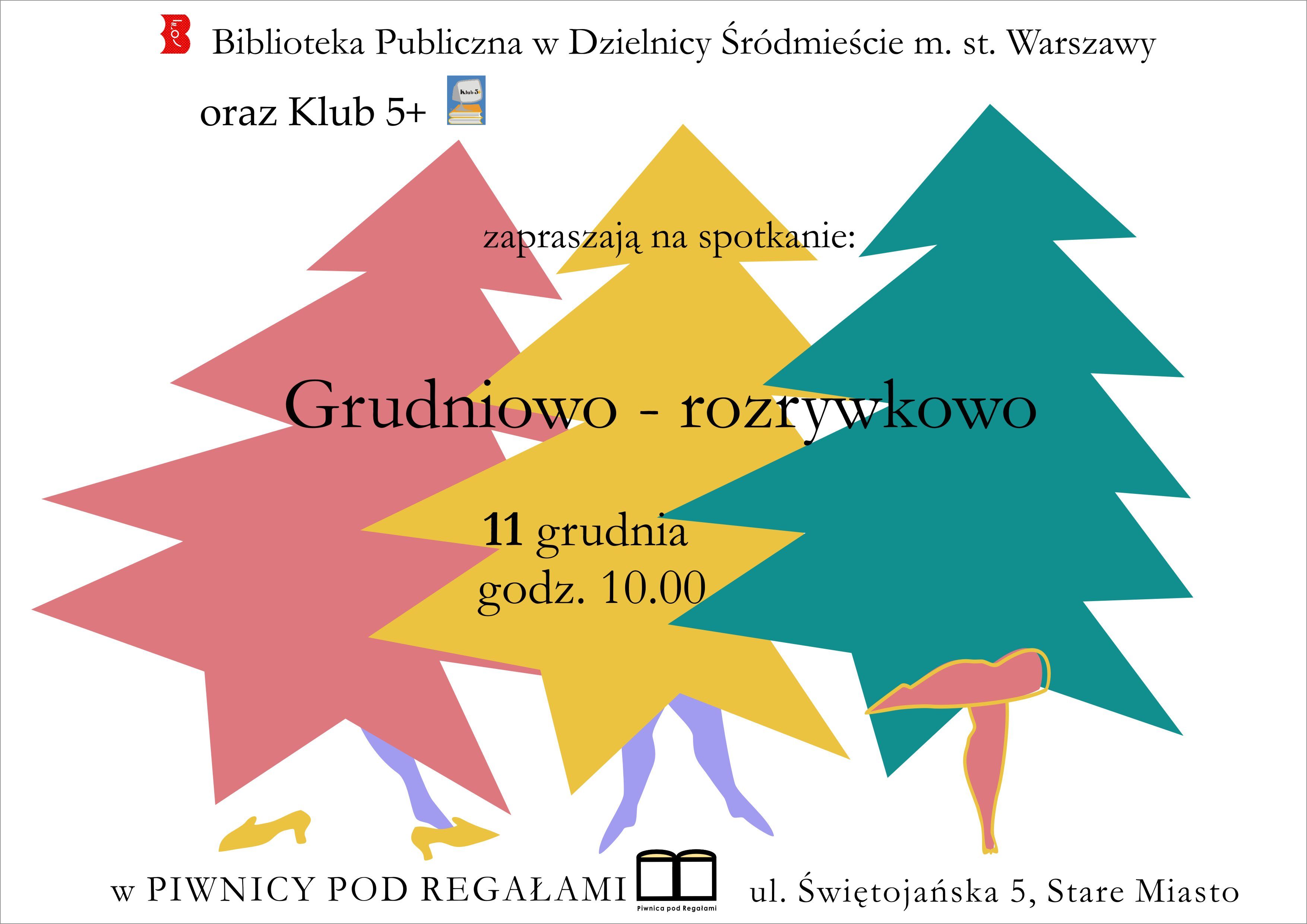 Zapraszamy w środę 11 grudnia o godzinie 10:00 do „Piwnicy pod Regałami”, gdzie odbędzie się spotkanie Klubu 5+ pt. „Grudniowo – rozrywkowo”.
