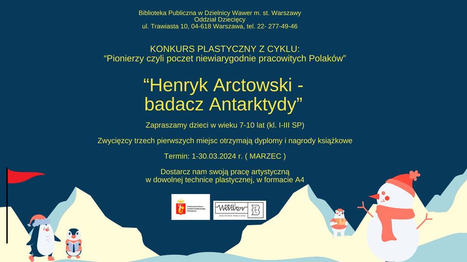 Od 1 do 30 marca będziemy czekać na obrazkowe historyjki ilustrujące przygody i sukcesy Henryka Arctowskiego.