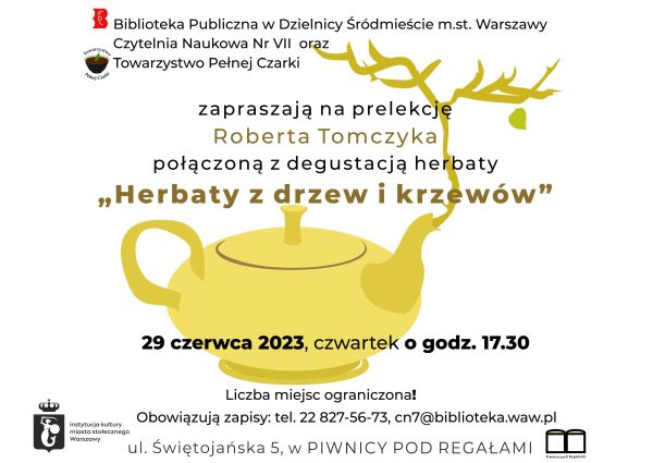 Zapraszamy na spotkanie pt. „Herbaty z drzew i krzewów” w dniu 29 czerwca o godzinie 17:30. Prelekcja Roberta Tomczyka połączona będzie z degustacją herbaty.