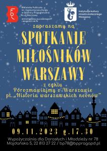 Tematem spotkania będzie „Historia warszawskich neonów”.