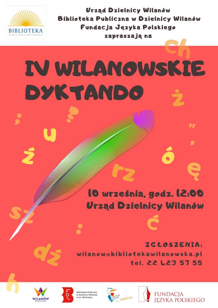 Rusza IV już edycja Wilanowskiego Dyktanda, w którym na zwycięzcę czeka atrakcyjna nagroda oraz tytuł Wilanowskiego Mistrza Ortografii.