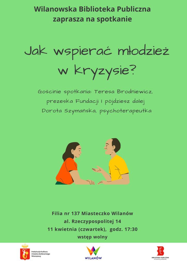 Wiek nastoletni nie jest łatwy. Kształtowanie się charakteru, dużo zmian, poszukiwanie akceptacji środowiska, różne problemy. Ważne jest, by w tym czasie wspierać nastolatków i być dla nich oparciem. Uczyć ich mądrego podchodzenia do wielu spraw. Jak to zrobić? Odpowiedź na to pytanie, drodzy Rodzice, znajdziecie podczas spotkania w filii Biblioteki w Miasteczku Wilanów. Naszymi przewodniczkami po temacie będą Teresa Brodniewicz – prezeska Fundacji I pójdziesz dalej oraz psychoterapeutka Dorota Szymańska.
