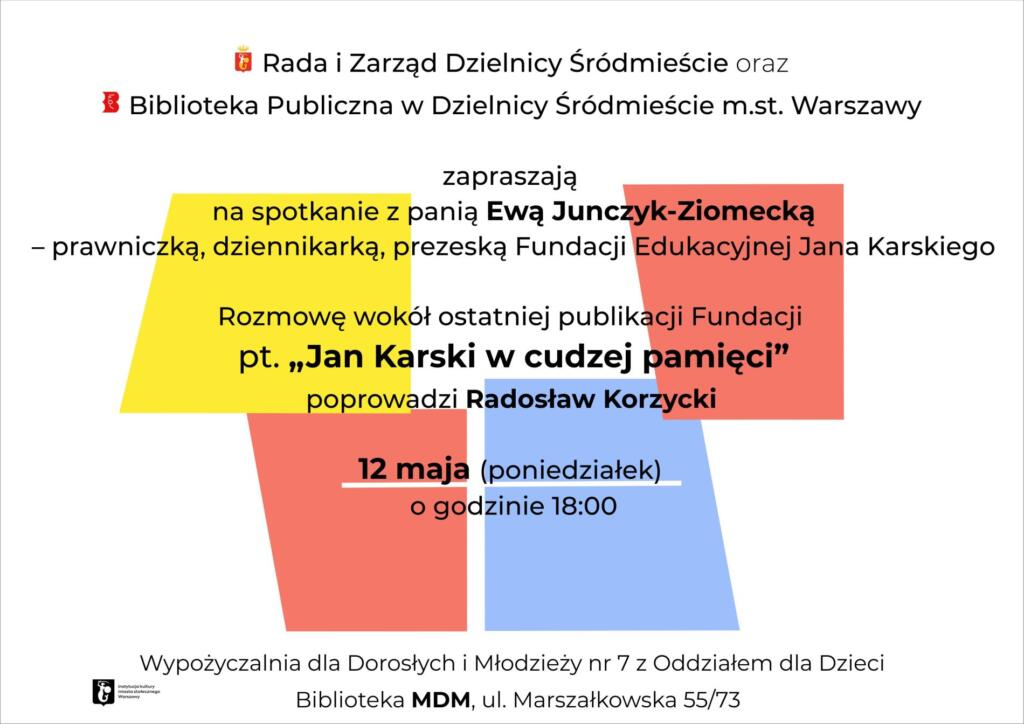 Rozmowę wokół ostatniej publikacji Fundacji pt. „Jan Karski w cudzej pamięci” poprowadzi Radosław Korzycki.