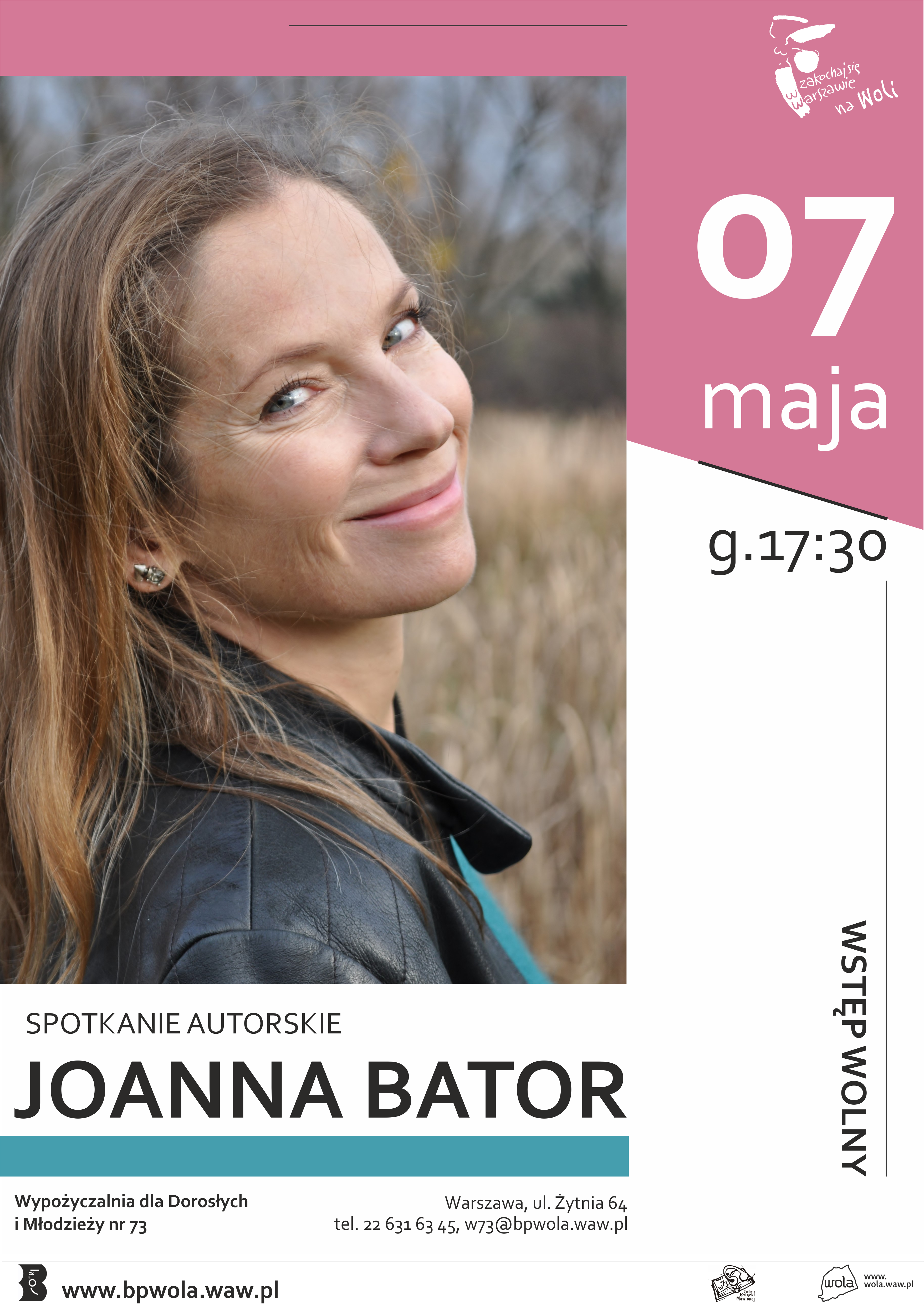 Zapraszamy do Wypożyczalni dla Dorosłych i Młodzieży nr 73 – jednej z filii Biblioteki Publicznej w Dzielnicy Wola m.st. Warszawy, gdzie odbędzie się spotkanie z pisarką Joanną Bator. Porozmawiamy o jej książkach, pisarskich inspiracjach, spędzaniu czasu blisko natury, fascynacji kulturą Japonii oraz o głośnej ekranizacji jej powieści „Ciemno, prawie noc”.