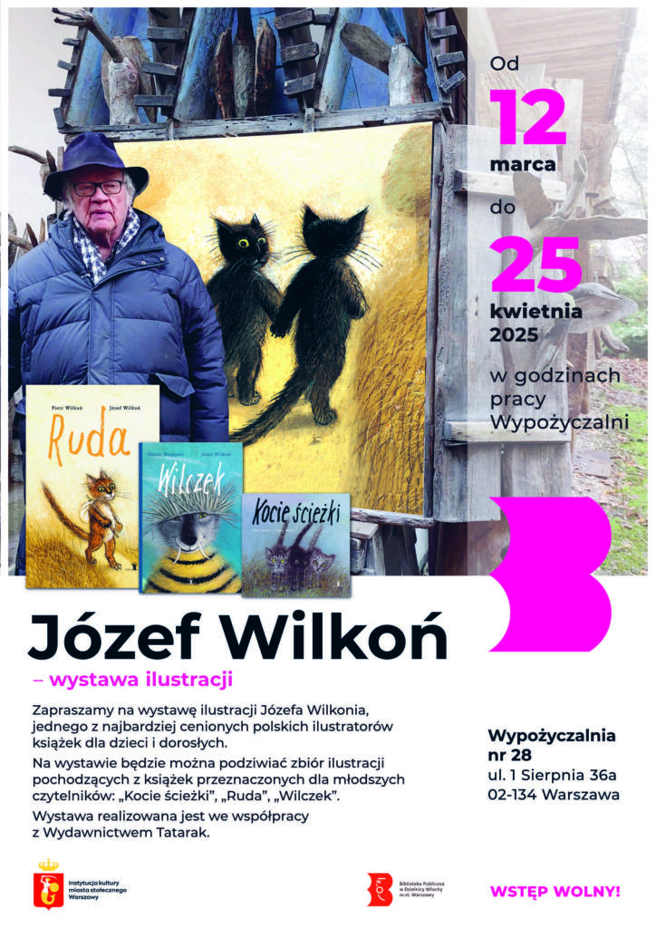 Wypożyczalnia nr 28 zaprasza na wystawę ilustracji Józefa Wilkonia, jednego z najbardziej cenionych polskich ilustratorów książek dla dzieci i dorosłych.