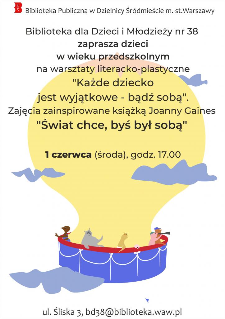 W środę, 1 czerwca o godzinie 17:00 zapraszamy do Biblioteki dla Dzieci i Młodzieży nr 38 przy ulicy Śliskiej 3 na warsztaty literacko-plastyczne.