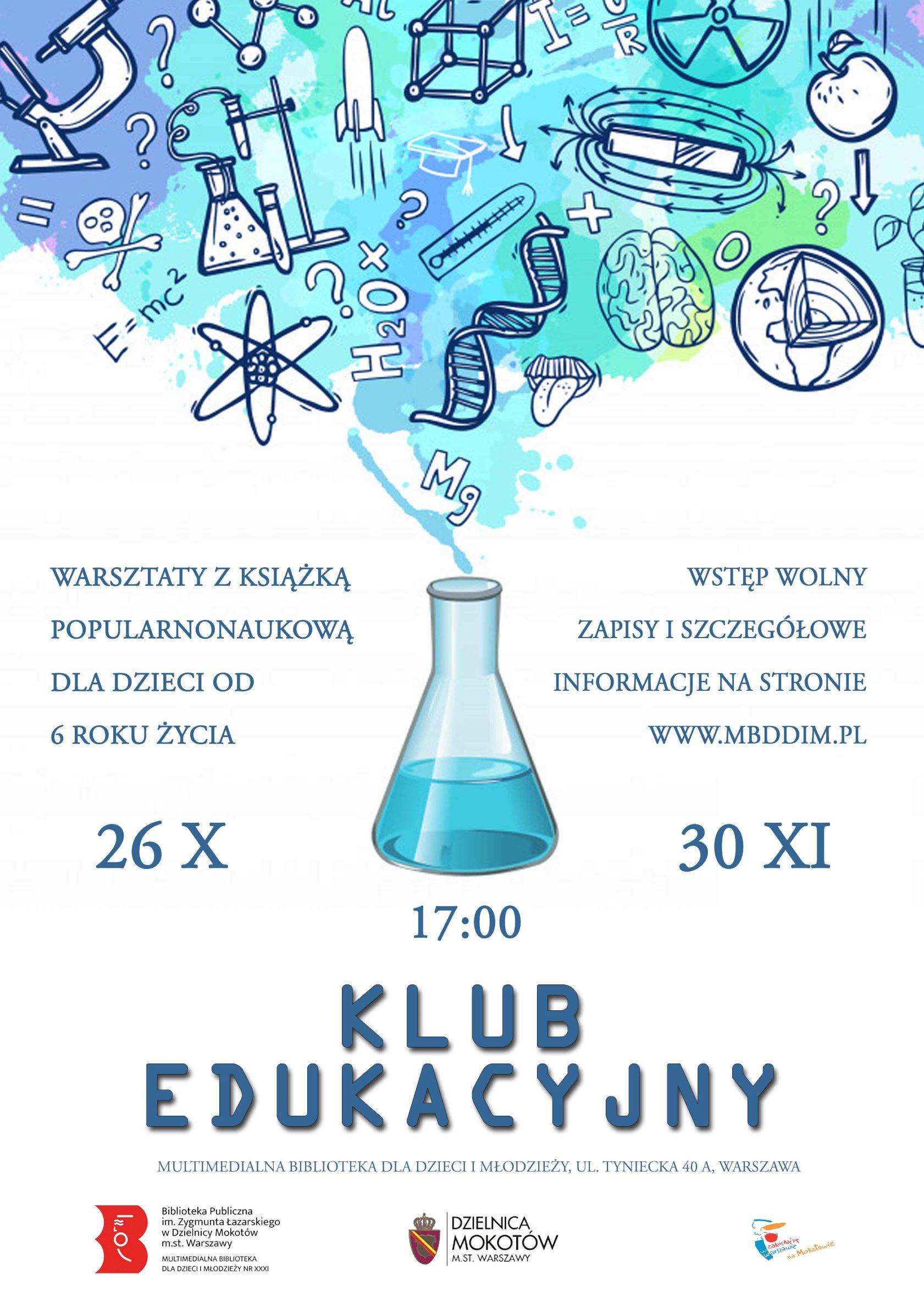 Klub edukacyjny, to comiesięczne aktywne warsztaty, dotyczące różnych dziedzin nauki. Podczas warsztatów czytamy, oglądamy filmy popularnonaukowe, eksplorujemy, eksperymentujemy, robimy burze mózgów i wpadamy na szalone pomysły. Wiemy przecież, że nauka nie jest nudna, a najlepszym sposobem na zdobywanie wiedzy jest zabawa!