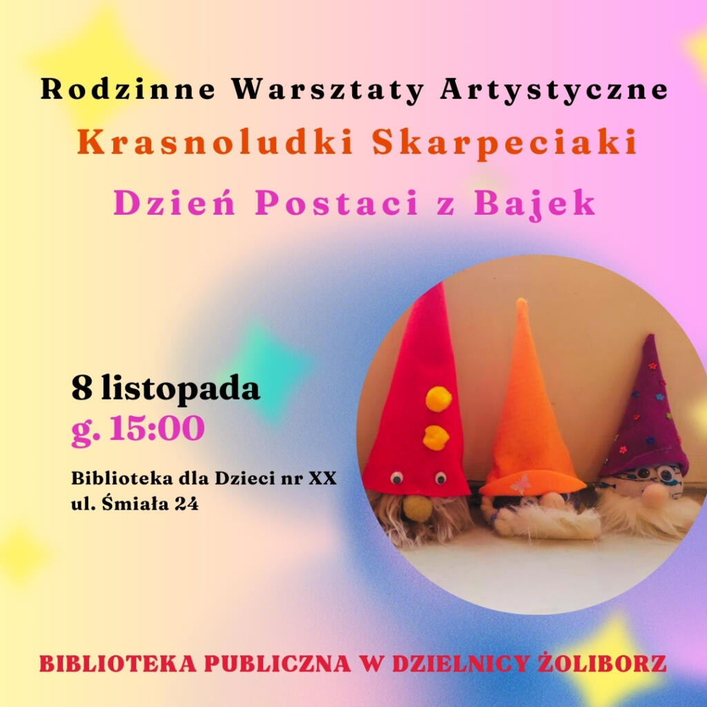Warsztaty odbędą się 8 listopada (piątek) o godzinie 15:00 w Bibliotece przy Śmiałej 24!
