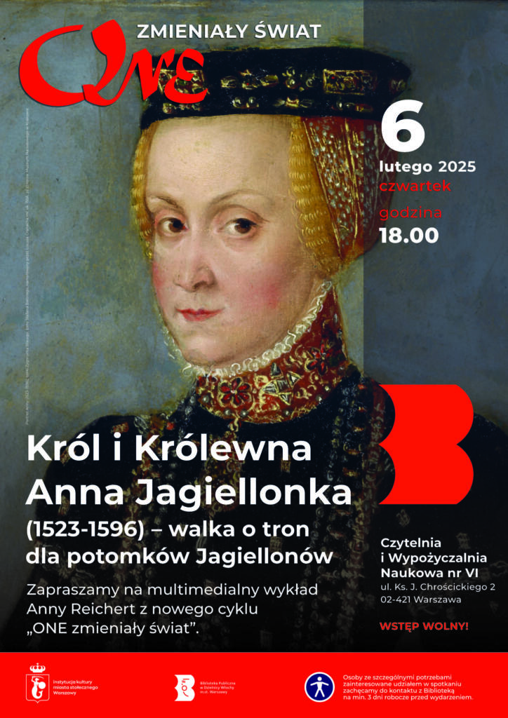 W czwartek 6 lutego 2025 o godz. 18.00 zapraszamy do Czytelni i Wypożyczalni Naukowej nr VI na spotkanie z Anną Reichert z cyklu zatytułowanego „ONE ZMIENIAŁY ŚWIAT”.
