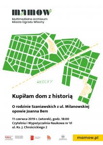 „Kupiłam dom z historią – o rodzinie Szaniawskich z ul. Milanowskiej” – taki tytuł nosi spotkanie prezentujące zasoby Multimedialnego Archiwum Miasta Ogrodu Włochy, którego gościem specjalnym będzie Joanna Bem.