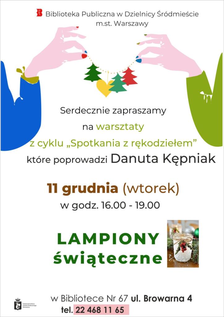 Biblioteka Publiczna w Dzielnicy Śródmieście m.st. Warszawy zaprasza na warsztaty rękodzieła – lampiony świąteczne z Danutą Kępniak.