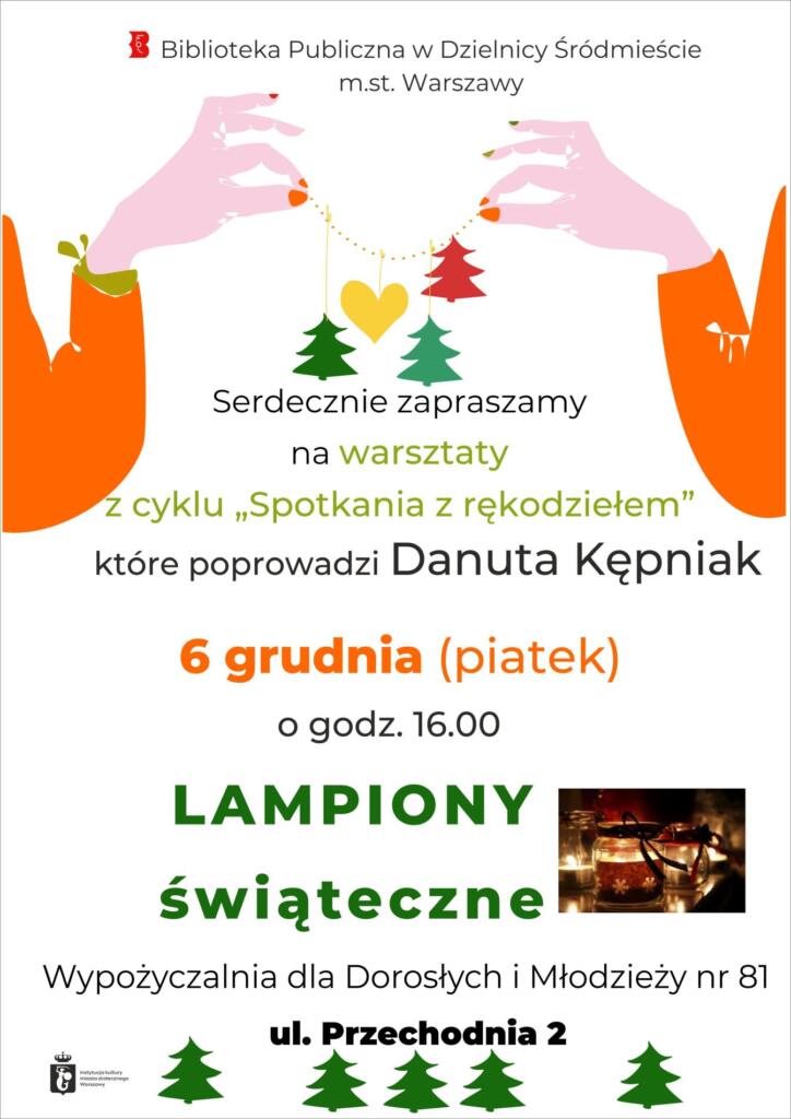 Biblioteka Publiczna w Dzielnicy Śródmieście m.st. Warszawy zaprasza na warsztaty rękodzieła – lampiony świąteczne z Danutą Kępniak.