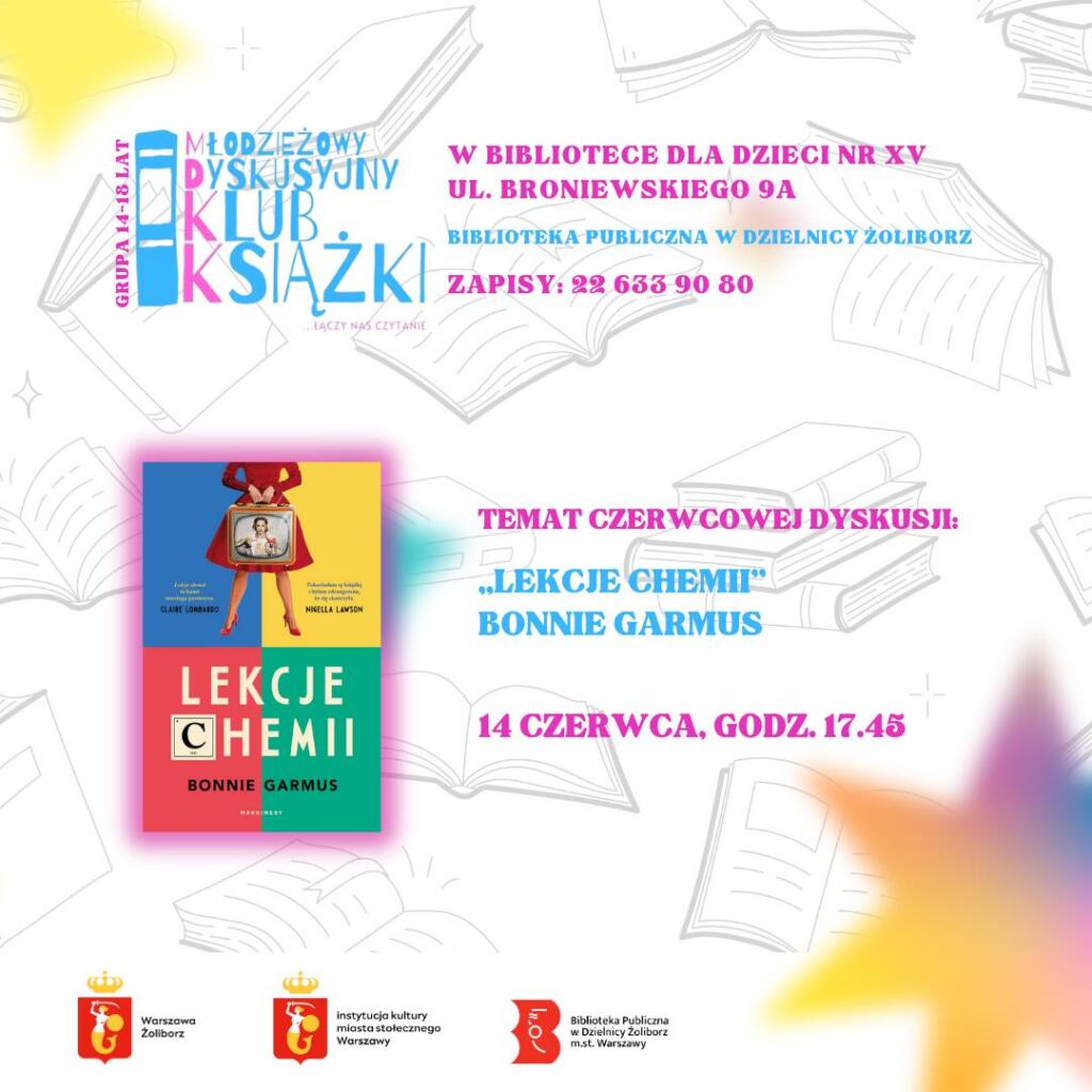 Zapraszamy na czerwcowe spotkanie Młodzieżowego Dyskusyjnego Klubu Książki (MDKK) do Biblioteki dla Dzieci nr XV przy ul. Broniewskiego 9A!
