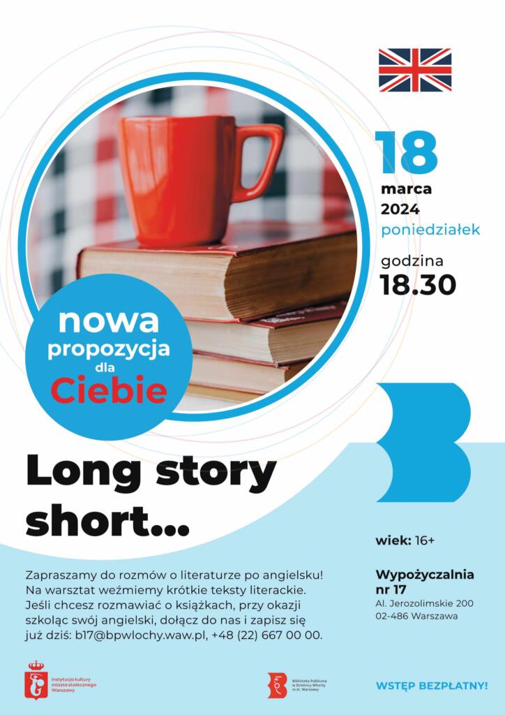 Wypożyczalnia nr 17 zaprasza młodzież 16+ oraz dorosłych na Long story short… czyli dyskusje na temat krótkich tekstów literackich w języku angielskim.