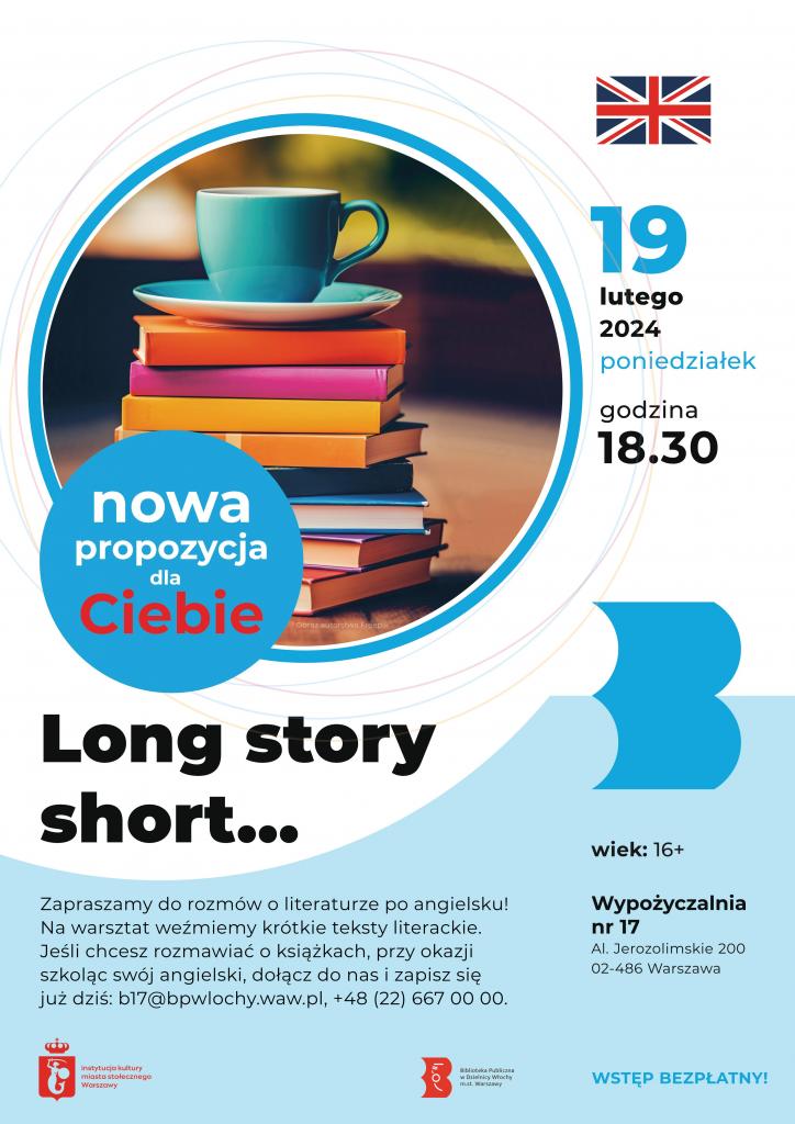 Wypożyczalnia nr 17 zaprasza młodzież 16+ oraz dorosłych na Long story short…, czyli dyskusje na temat krótkich tekstów literackich w języku angielskim.