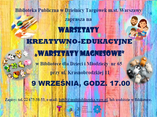 Biblioteka Publiczna w Dzielnicy Targówek m.st. Warszawy zaprasza na warsztaty kreatywno – edukacyjne pn. „Warsztaty Magnesowe”.