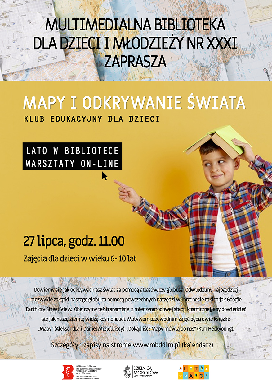 Klub edukacyjny wraca na wakacje w formie zajęć online! Tym razem na zajęciach będziemy podróżować w wyobraźni i palcem po mapie.