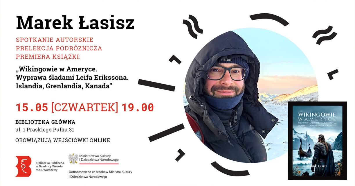 Spotkanie autorskie połączy prelekcję podróżniczą autora oraz premierę książki: “Wikingowie w Ameryce. Wyprawa śladami Leifa Erikssona. Islandia, Grenlandia, Kanada”.