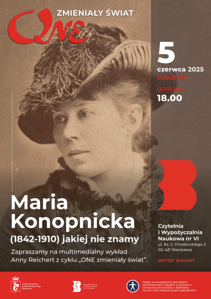 W czwartek 5 czerwca 2025 o godz. 18.00 zapraszamy do Czytelni i Wypożyczalni Naukowej nr VI na kolejne spotkanie z Anną Reichert z cyklu zatytułowanego „ONE ZMIENIAŁY ŚWIAT”.