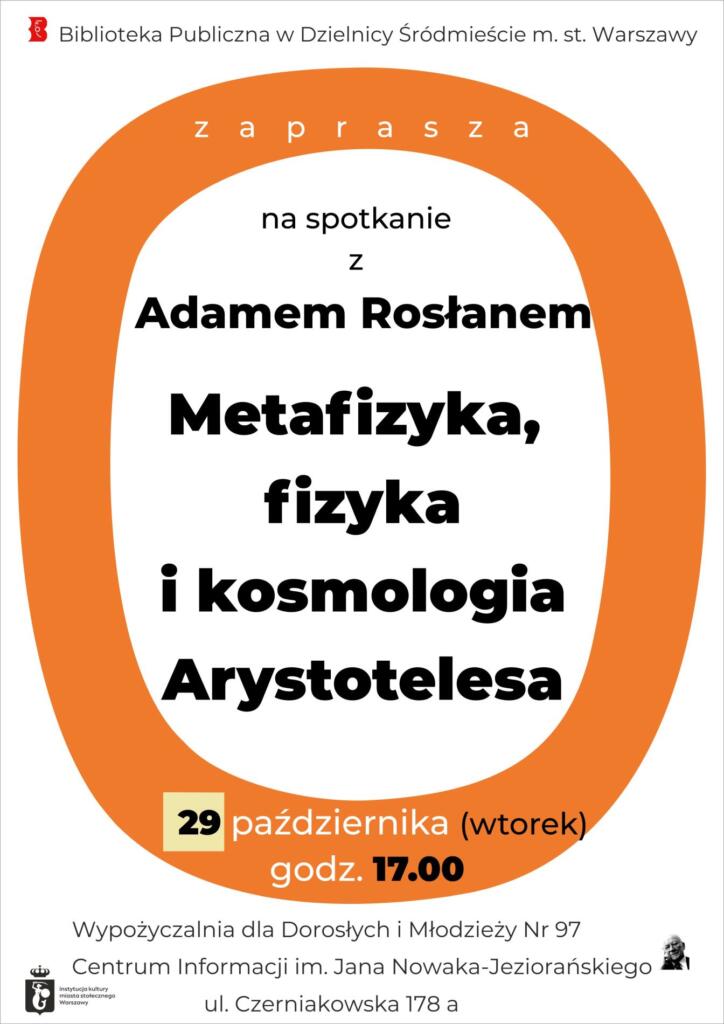 Biblioteka Publiczna w Dzielnicy Śródmieście m.st. Warszawy zaprasza na wykład Adama Rosłana pt. „Metafizyka, fizyka i kosmologia Arystotelesa”.