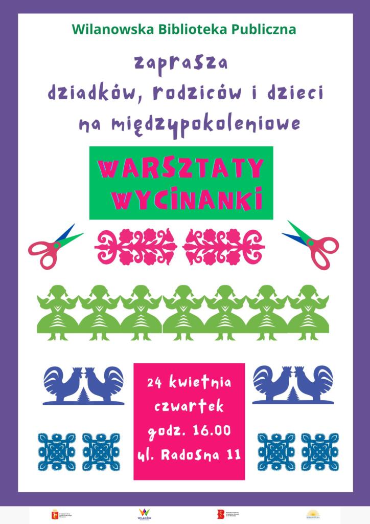 W radosnej atmosferze i wielopokoleniowym towarzystwie poznajmy arkana sztuki ludowej. Zainspirowani folklorem zapraszamy na międzypokoleniowe warsztaty wycinanki. Z szablonów o różnych stopniach trudności będziemy tworzyć nasze prace, a następnie oprawiać je tak, by stworzyły kunsztowne obrazki, które można podarować bliskim jako prezent lub udekorować nimi dom.