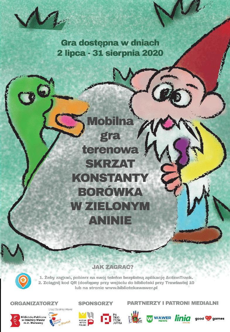 Co roku biblioteka w Aninie zaprasza w pierwszą sobotę czerwca na obchody dnia patrona Wypożyczalni dla Dorosłych nr 87, Konstantego Ildefonsa Gałczyńskiego. W tym roku z powodu pandemii uroczystości zostały przeniesione do internetu, ale  nie do końca zrezygnowano ze spotkania na żywo. Bibliotekarze wawerscy idąc z duchem czasu i pamiętając o zachowaniu bezpieczeństwa wychodzą z ciekawą propozycją na spędzenie wolnego czasu w okresie wakacyjnym. Proponują zagranie w mobilną grę miejską, dzięki której dzieci zapoznają się z ciekawostkami z życia Konstantego Ildefonsa Gałczyńskiego, jego twórczością, ale też i z innymi postaciami związanymi z Aninem, poznając historię i tajemnice tego osiedla.