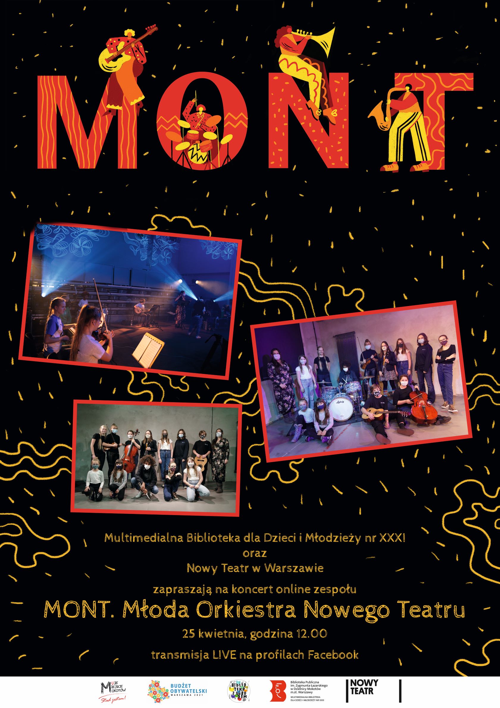 Multimedialna Biblioteka dla Dzieci i Młodzieży nr XXXI oraz Nowy Teatr w Warszawie zapraszają na koncert online zespołu MONT, czyli Młodej Orkiestry Nowego Teatru.