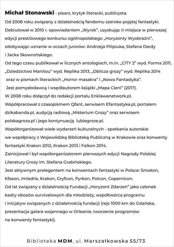Biblioteka Publiczna w Dzielnicy Śródmieście m.st. Warszawy zaprasza na spotkanie z Michałem Stonawskim pt. „Nawiedzenia i opętania