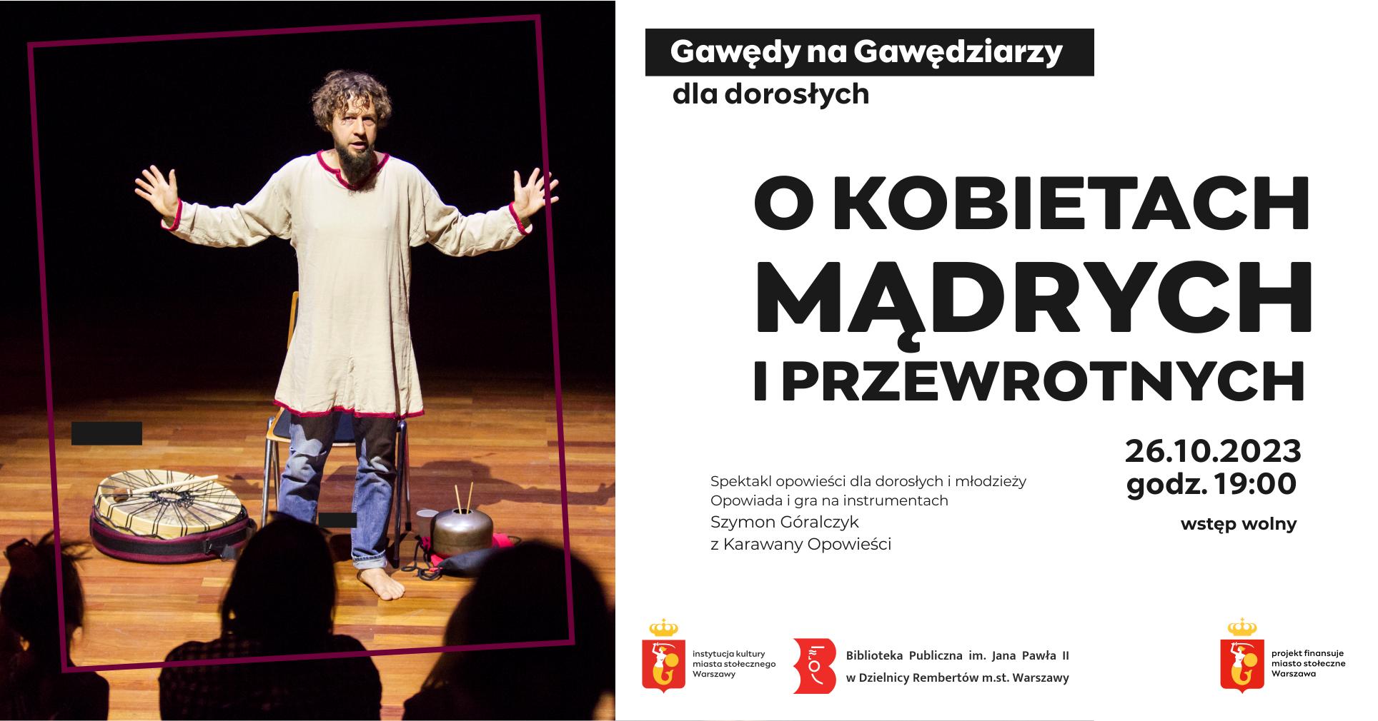 Na początku było słowo, a ze słów zrodziły się opowieści utkane z kobiecej siły. Rembertowska biblioteka zaprasza dorosłych i młodzież na spektakl opowieści „O kobietach mądrych i przewrotnych”. Wydarzenie odbędzie się w bibliotece przy ul. Gawędziarzy 8, w czwartek 26 października o godz. 19:00.